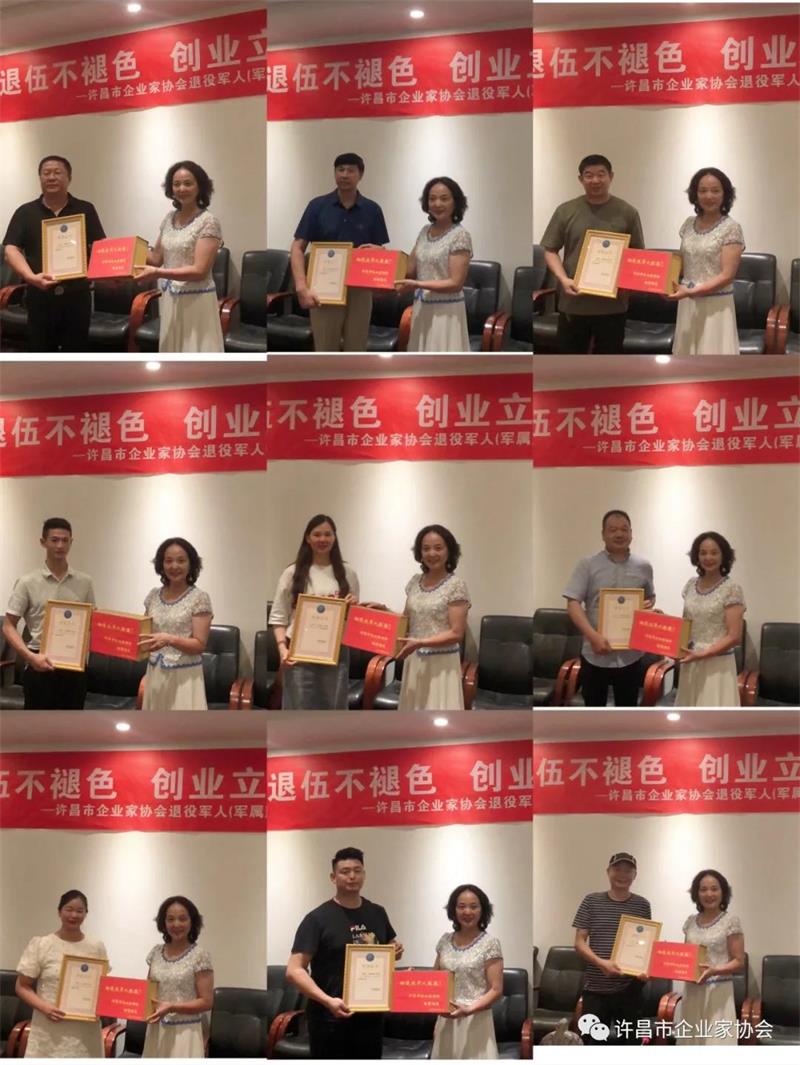 (許昌市企業(yè)家協(xié)會(huì)秘書長黃玉霞共同為協(xié)會(huì)退役軍人(軍屬)頒發(fā)榮譽(yù)證書及獎(jiǎng)品)
