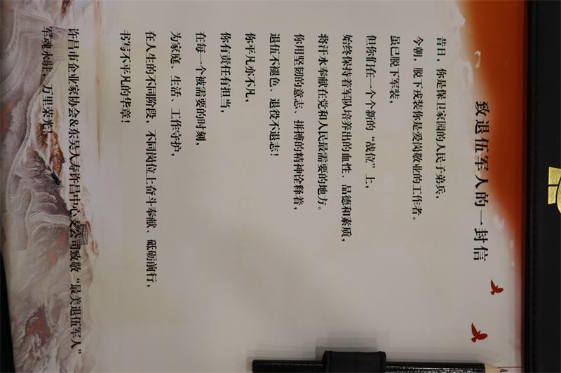 座談會(huì)暨“最美退役軍人”表彰活動(dòng),在協(xié)會(huì)內(nèi)外廣大退役軍人中產(chǎn)生了熱烈的反響,進(jìn)一步提升了退役軍人的榮譽(yù)感、獲得感,激勵(lì)引導(dǎo)廣大退役軍人揚(yáng)正氣、樹標(biāo)桿、展風(fēng)采、續(xù)傳承。一名退役軍人,就是一面旗幟,愿退役軍人企業(yè)家們勇往直前,開創(chuàng)更加輝煌的未來。