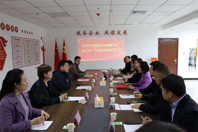 3月13日上午,魏都區(qū)委副書記、政法委書記孫衛(wèi)東一行蒞臨企業(yè)家協(xié)會調(diào)研指導工作,魏都區(qū)總工會、團區(qū)委、區(qū)婦聯(lián)等單位主要負責同志一同前往。企業(yè)家協(xié)會秘書長黃玉霞等十家企業(yè)代表參加座談。