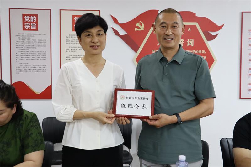 6月5日下午,許昌市企業(yè)家協(xié)會六月份輪值會長工作交接會在許昌市企業(yè)家協(xié)會會議室召開,會議由六月份值班會長、許昌康潔洗滌有限公司總經理薛世興主持。