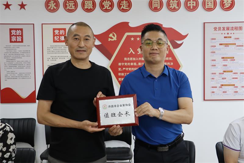 7月5日下午,許昌市企業(yè)家協(xié)會七月份輪值會長工作交接會在許昌市企業(yè)家協(xié)會會議室召開,會議由七月份值班會長、許昌有朋能源科技有限公司總經(jīng)理婁玉陣主持。
