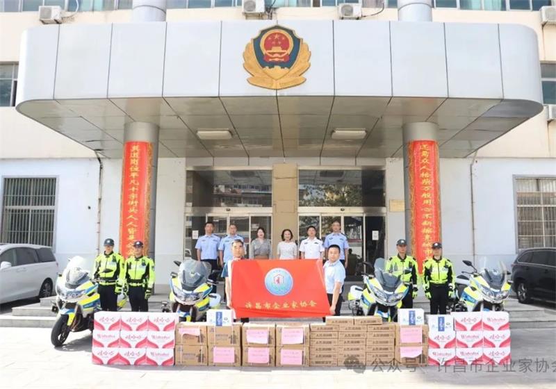 黃玉霞秘書長一行為支隊(duì)民輔警贈送了礦泉水、洗衣液等慰問品。她表示在夏季連續(xù)的高溫酷暑天氣下,支隊(duì)交通管理工作者堅(jiān)守一線、查處違法、服務(wù)群眾、保障交通安全,特對持續(xù)堅(jiān)守崗位的民輔警表達(dá)誠摯的慰問和崇高的敬意。呂振杰支隊(duì)長代表支隊(duì)全體同志向企業(yè)家協(xié)會一行表示感謝。
